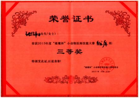 10月27日,全国首届“雄鹰杯”小动物医师技能大赛决赛在深圳举行,英国上市公司3652012级动物医学1班张佳韧作为公司唯一选手参赛,与入围的57名高校选手同场竞技,经过激烈的比拼,最终荣获三等奖。