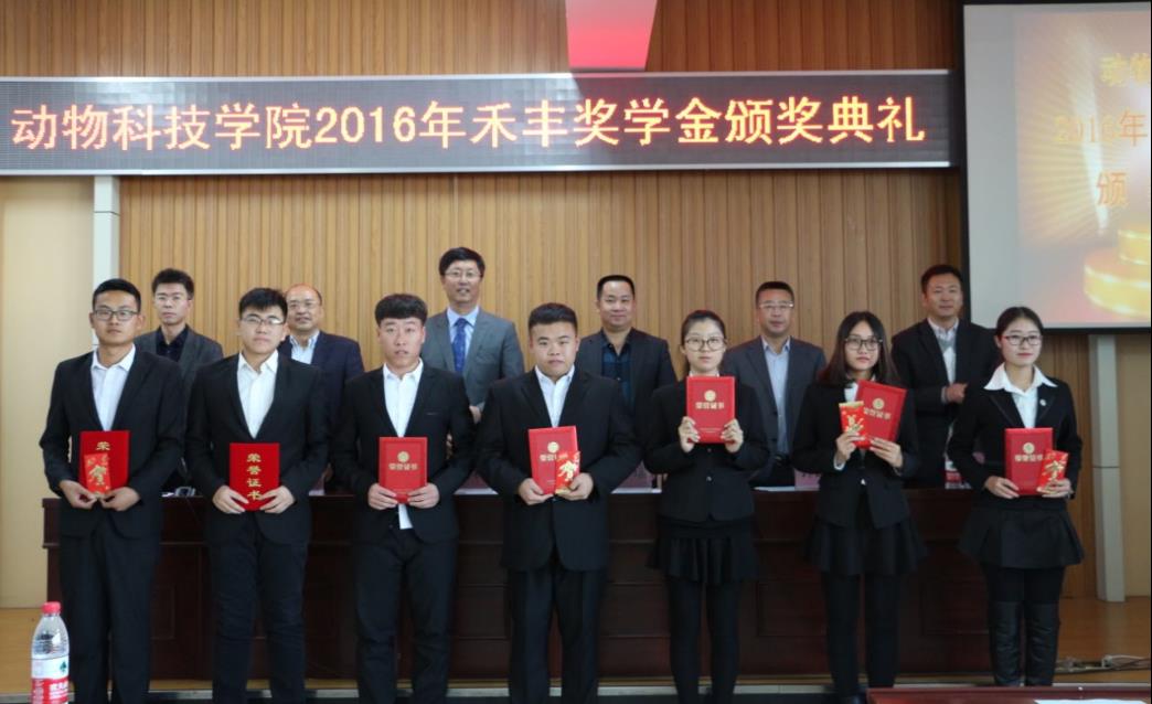 首先进行了2016年禾丰奖学金颁奖典礼,辅导员苏杰获得素质教育先进个人,魏巍等15名员工分获科技创新、社会实践、体育标兵、文艺标兵、学习标兵、自强不息标兵、优秀员工干部奖。与会领导为获奖的师生颁发荣誉证书及奖金,许连详总监和武瑞经理分别对获奖的师生表示祝贺,并鼓励他们禀承学院“尊师重教、厚德重情”的优良传统,珍惜师生情、员工情,把握好大学光阴,做智慧、勤奋的动科人。
