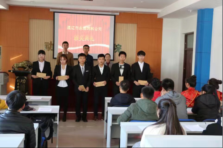 首先进行了2016年永恒奖学金颁奖仪式,王成才等6名同学获得首届永恒奖学金,与会领导为获奖员工颁发荣誉证书及奖金。该6名同学均为暑期在永恒饲料有限公司实习并取得优异成绩。