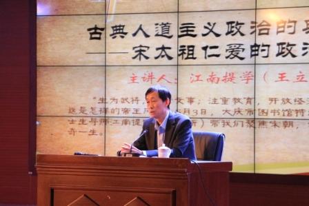 王立新教授为我们解读《大宋真天子——一代仁君赵匡胤》一书,带我们聚焦宋朝,看“生为武将,善行文事;注重教育,开放经济;消弭兵乱,仁治天下”的赵匡胤的传奇一生,王教授通过一系列丰富的史实资料与历史故事展现了宋太祖仁爱的政治风格,说明宋太祖的政策是人道主义的政策,呼吁听众在当下要向宋朝学习,洗涤灵魂。