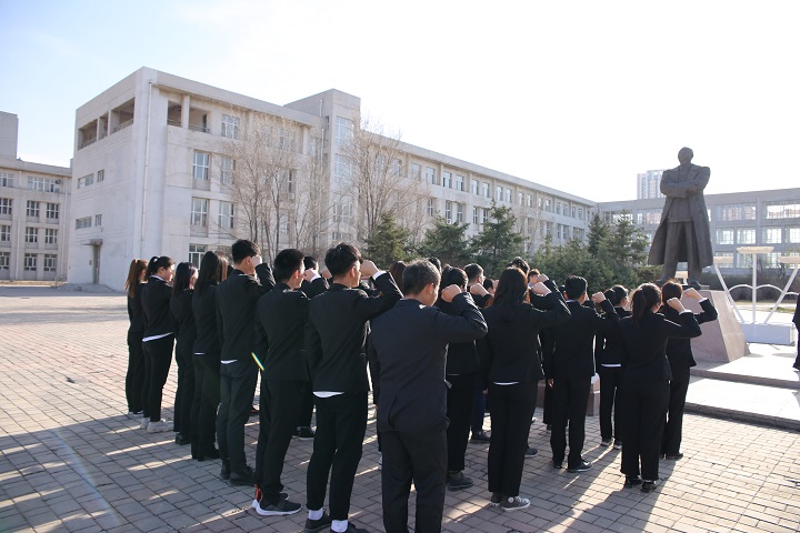 首先,团员青年代表在学院大会议室收看了4月19日中央政治局第十四次集体学习视频短片,重温五四运动的伟大意义,与会员工热烈讨论了习近平总书记在中央政治局第十四次集体学习时发表的重要讲话,更加坚定了听党话、跟党走、为实现中华民族伟大复兴的中国梦而努力奋斗的信念。随后,全体员工来到将军广场,面对王震将军像庄严宣誓,铿锵的誓词见证了同学们立志传承五四精神,扎根大地、奋发有为,为国家发展、民族复兴贡献力量的豪迈决心。