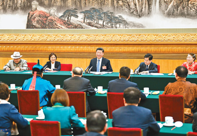 3月5日,习近平参加十三届全国人大二次会议内蒙古代表团的审议。