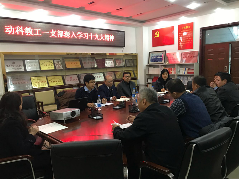 2017年11月8日下午3点30分,动科教工一支部全体党员在动科院4085会议室集体学习党的十九大精神。会上全体党员通过观看中国社会科学院马克思主义研究院候慧勤教授对十九大报告的理论创新点的剖析以及北京大学马克思主义学院郭建宁教授对习近平新时代特色主义思想的总结归纳,加深了对十九大的了解。视频观看完毕后,各个党员针对视频中两位教授对十九大的剖析谈了切身体会。大家一致认为作为一名教师党员,尤其是畜牧专业的教师,在治理畜牧业中废弃物污染、提高秸秆综合利用率等方面来促进国家生态文明建设具有不可推卸的责任。今后很长一段时间内全体党员将继续学习、全面吃透十九大报告精神,学思践悟,切实把报告提出的新思想、新观点和新要求转化为推动教学和科研工作的强大动力。