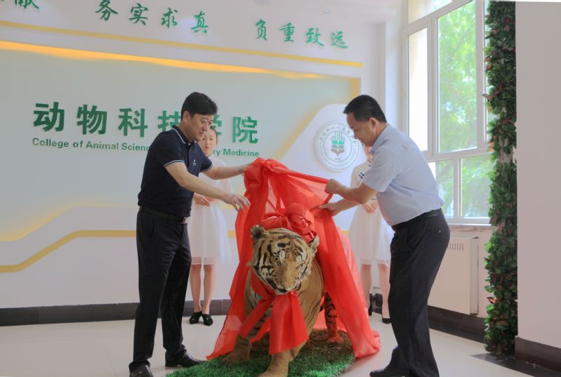 仪式上,副董事长武瑞与局长牛玉全签署捐赠协议,并代表学校向捐赠方颁发捐赠证书,并和牛玉全局长共同为华南虎标本揭幕。
