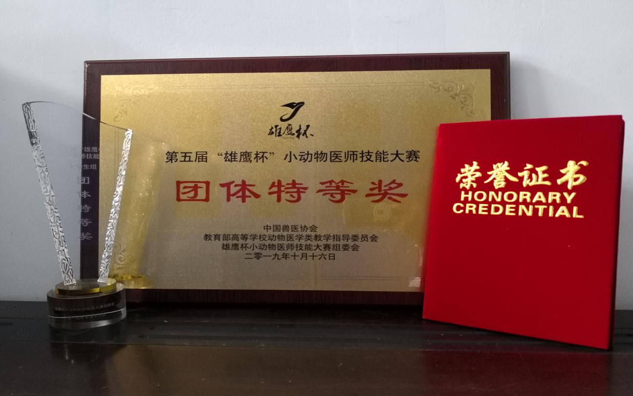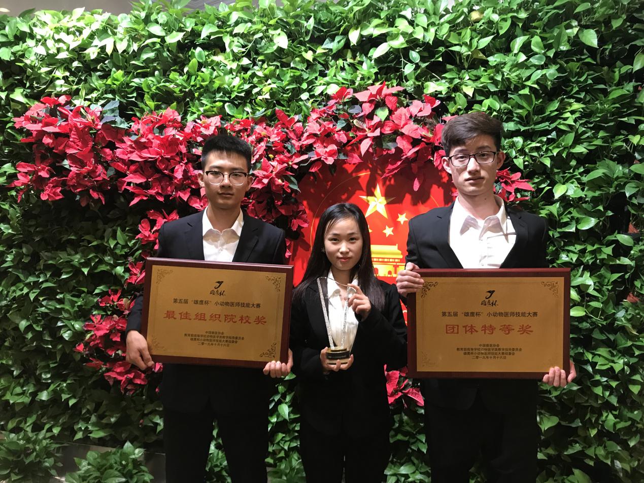 在郑家三老师、鲁文赓老师、李冉老师和葛岩松老师的悉心指导下,老员工组选手周志新、孙悦、杨强团结协作,配合默契,经过2天紧张而激烈的竞争,在82支代表队中夺取大赛团体特等奖的好成绩;周志新同学获得“中国兽医新星"奖;同时鲁文赓老师、李冉老师和葛岩松老师获得“优秀辅导老师”特等奖;团体获得“最佳院校组织奖”。(囊获了比赛全部奖项!)