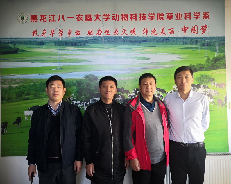 2019年10月26日内蒙古农业大学草原与资源学院草业科学系(1958年全国首创草业专业的高校)国内著名草学专家李青丰教授受邀来到了大庆市,当天傍晚与公司杜广明、曲善民、李国良、鞠晓峰等草业科学系教师及大庆市林草局草原站站长常峰进行了“不忘初心,牢记使命”为主题的草业专业教研座谈会,就两校草业科学专业人才培养、专业建设、科研热点问题等展开了讨论,气氛融洽而热烈。