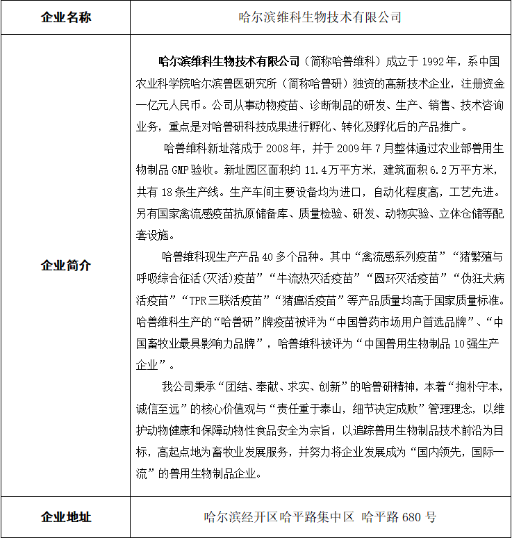 哈尔滨维科生物技术有限公司招聘简章