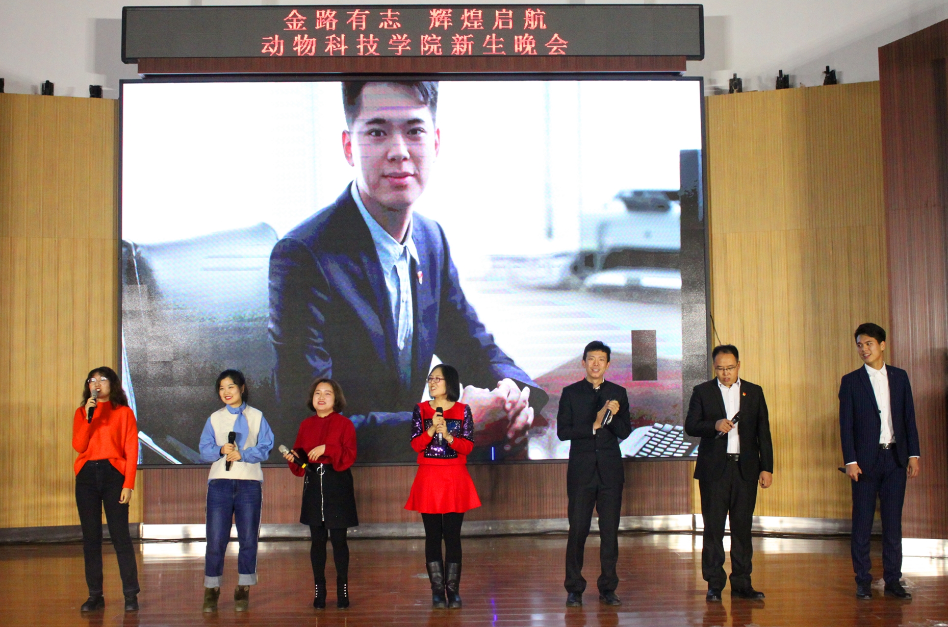 在学院已经毕业的学长学姐精彩的开场舞之后,全体院领导为员工献上一场“青春与梦想”的朗诵,孙东波经理代表学院全体教师为2019级员工送上一份“永不过期的祝贺”,并希望新同学们要树立远大理想,拒绝平庸;热爱祖国,锤炼品格;担当时代责任,以强农兴农为己任;感恩父母,尊师爱校,做一名厚德重情的动科人。共筑动科梦,共筑八一农大梦,共筑中国梦。