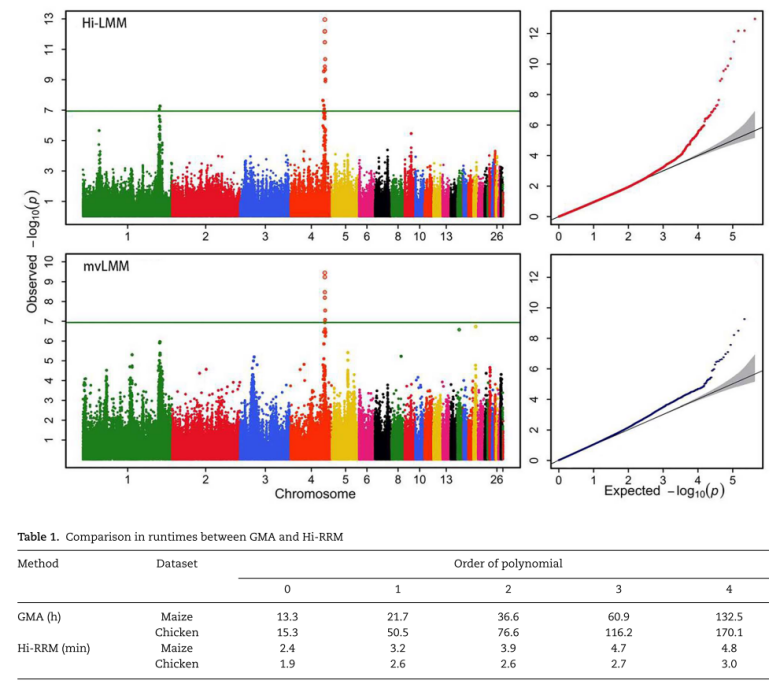 该研究针对动态性状测定时间点多、各测定点表型记录存在遗传相关、数据不均衡、计算复杂度高等特点,提出“全基因组分层随机回归模型关联分析算法”。模拟试验和实际家禽数据蛋重生长曲线SNP位点定位分析,验证了该算法在保证动态性状全基因组关联分析统计效力的同时,极大地缩短了计算时间和计算机内存占有量,为全基因组关联分析技术在畜禽育种实践中的推广和应用奠定基础。本研究还开发了相应的分析软件Hi-RRM(https://github.com/RunKingProgram/HiRRM),供同行免费下载使用。