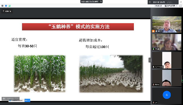 2022年4月14日下午,通过腾讯会议,动物科技公司党委书记张爱忠教授、“玉鹅种养”技术推广团队负责人王秋菊副教授,与内蒙古奈曼旗哈沙图村驻村第一书记国家自然科学基金委办公室葛勇勇副研究员、村支部书记刘友飞等人就哈沙图村将开展肉鹅生态养殖的技术需求及实施方案进行对接交流。