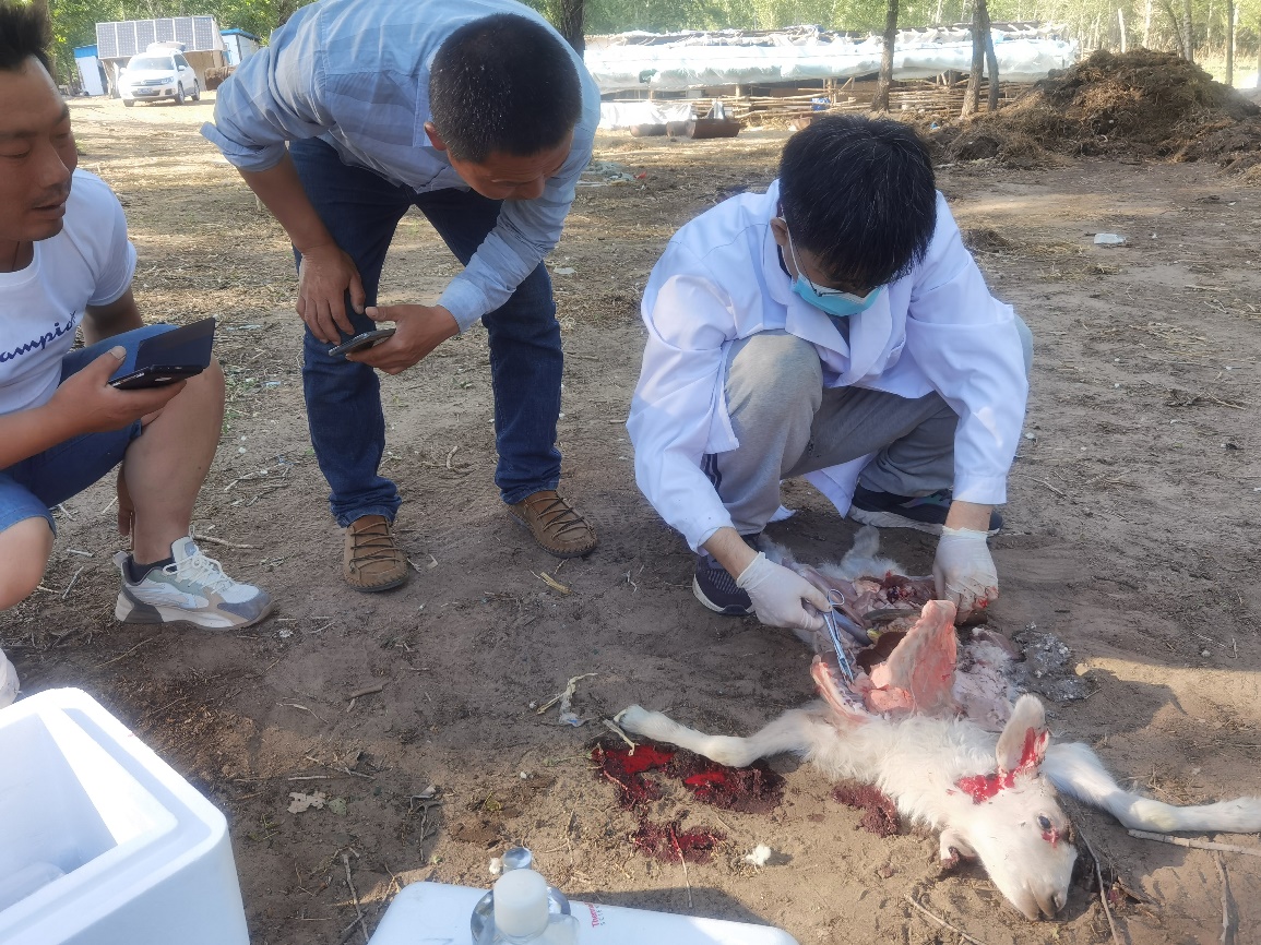 2022年5月23日,大庆市绿色草原牧场一养羊专业户羔羊连续出现死亡,造成严重经济损失。省肉羊产业体系岗位专家、英国上市公司365张爱忠教授和周玉龙副教授赴现场帮助解决问题。经过详细的询问饲喂方式、饲料配方、治疗情况、免疫情况、发病率、死亡率等流行病学调查,结合临床症状诊断和剖检病理学诊断,初步诊断为白肌病引起的死亡。为养殖户和当地兽医工作者讲解了羊白肌病的发病原因和防治措施,也为其饲养过程中存在的问题给予了指导。