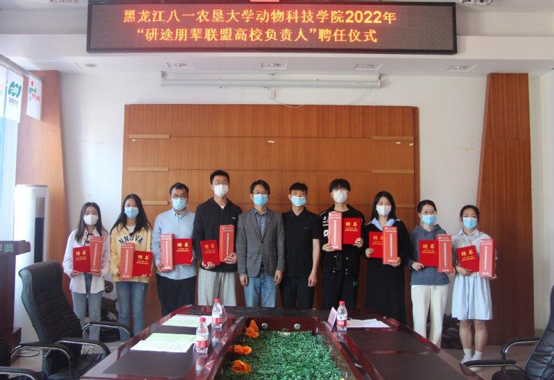 聘任仪式上,学院分团委书记苏杰宣读了聘任文件,学院副经理尹国安代表学院对第二批受聘的研途朋辈联盟高校负责人提出了两点希望:希望17位受聘同学牢记使命,担起八一农大动科人责任,17位同学都是经过学院精心选择任命的,希望在他们的任期中,不论学弟学妹们有怎样的困惑,不论事情大小,都可以为他们答疑解惑,担起职责,发挥朋辈帮扶作用,希望受聘同学在未来的学术发展道路上严谨认真、学术登高,在研究生生活中勤劳努力,将“艰苦奋斗、无私奉献、务实求真、负重致远”的精神,发扬光大,用自己的行动将八一农大动科人的名片擦亮。为母校添光加彩。
