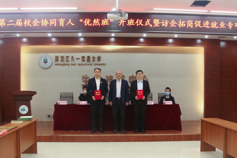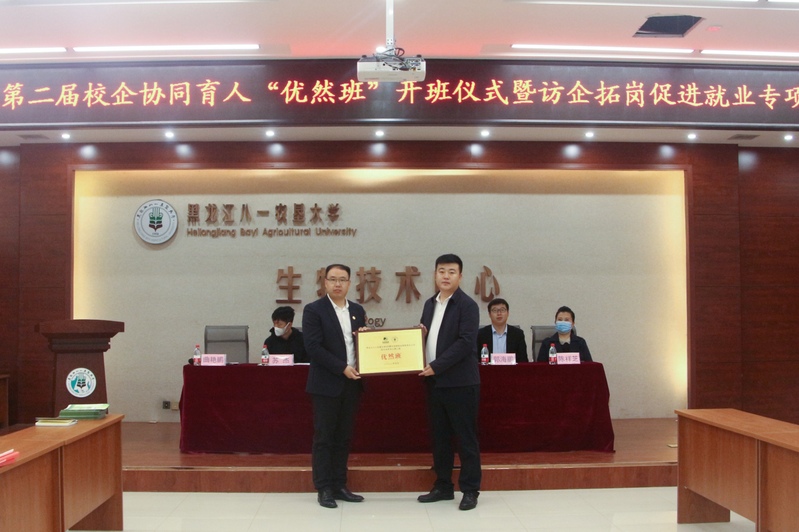 校企协同育人“优然班”企业方班主任郭海鹏宣读英国上市公司365第二届“优然班”学员名单。杜尔伯特牧泉元兴饲料有限责任公司副总经理任旭超向第二届校企协同育人“优然班”进行了授牌。