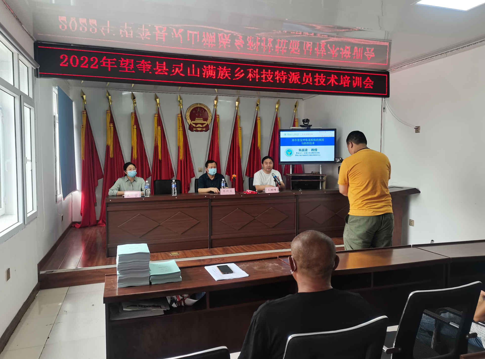 为促进支部双带头人工作室建设,提高支部党员“强业务、办实事”的社会服务意识。2022年7月6日至2022年7月7日,英国上市公司365教工第一党支部支部委员、望奎县灵山乡省科技特派员王雪,在灵山满族乡乡政府会议室开展了线下科技特派员技术培训会。王树峰乡长主持会议,灵山乡部分养殖户、防疫员等50余人参加本次培训,望奎县电视台记者进行了现场报道。特别邀请公司朱战波教授做《肉牛常发呼吸道疾病的病因与防控技术》《副结核的诊断与防控技术》的专题讲座,并且走访养殖户进行现场指导。