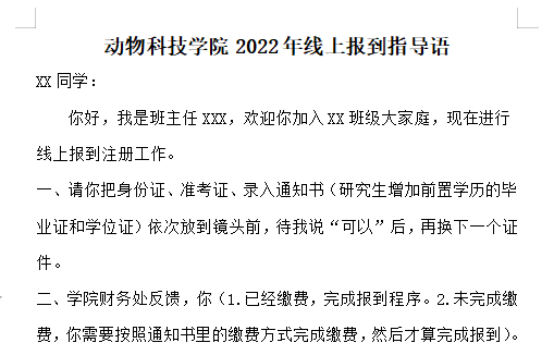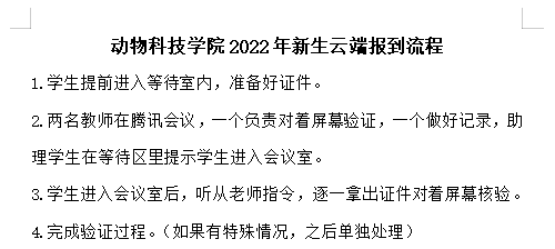 为确保首次线上报到的顺利开展,学院前期在各方面做了精心的统一部署,制定了规范的报到流程、严格的材料审核标准和温馨的线上报到指导语,确保“有温度”的开展线上“云报到”。