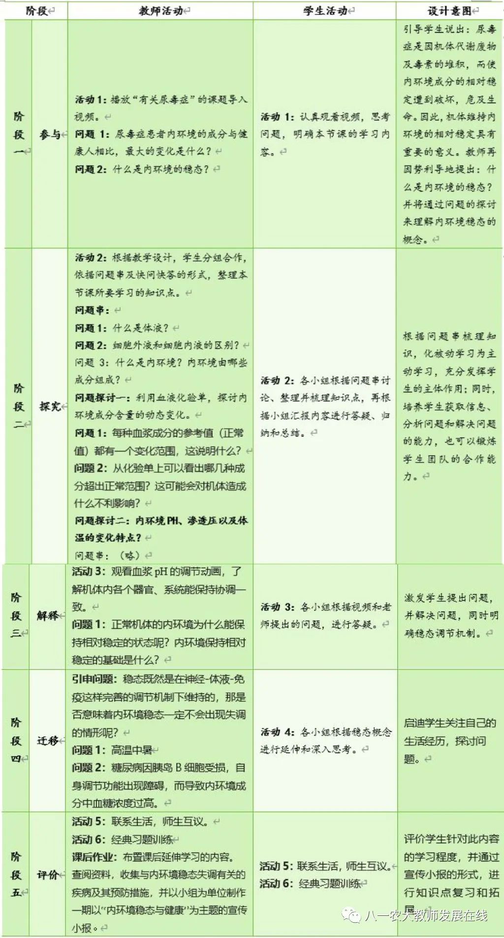 内环境稳态的教学过程
