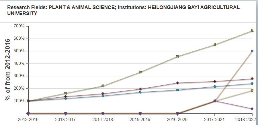 “植物与动物科学(Plant & Animal Science)”学科统计涵盖畜牧学、兽医学、作物学、植物保护等学科的科研成果。近年来,学院始终坚持学术引领推动人才培养、科学研究和社会服务水平提升,主动对接国家/区域战略和现代畜牧产业需求,凝练学科方向,促进交叉融合,经过多年内涵式发展,建设效果不断凸显,发表论文数量和质量不断攀升,2022年发表中科院二区以上论文50多篇,其中一区/Top期刊论文18篇。下一步,学院将以农业部重点实验室获批为契机,加大科研平台和实验条件建设,以“玉鹅种养生态农业”黑龙江省特色学科建设为引领,对标我省“双一流”建设要求,切实聚焦“四个面向”,全面提升团队建设内涵质量,助力学校高水平现代农业大学建设。