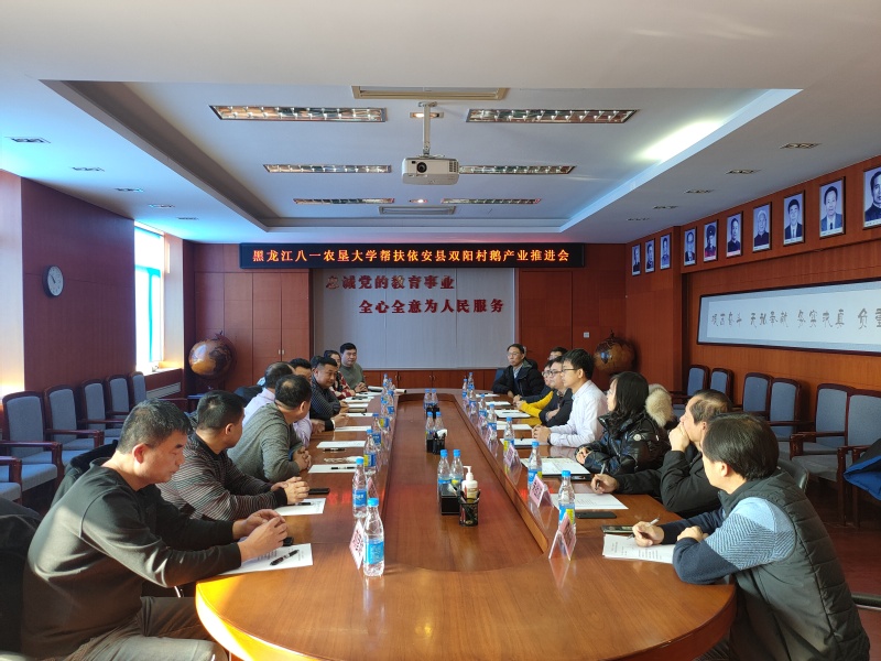1月29日,依安县副县长于扬、教育厅派驻双阳镇双阳村工作队队长李建民、双阳镇党委书记杨洪斌、万瑞牧业总经理张秀胜一行9人到访公司,就双阳村鹅产业项目召开座谈会。