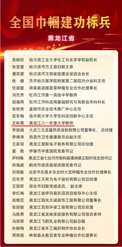 日前,全国妇联公布了2022年度全国女职工先进集体和个人的表彰名单,我院王秋菊老师被授予“全国巾帼建功标兵”荣誉称号。