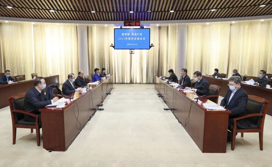 许勤首先对教育部长期以来对龙江振兴发展的关心支持表示感谢。许勤指出,教育部始终大力支持龙江教育事业发展,将黑龙江省纳入部省共同推进教育服务东北振兴战略合作省份,助力龙江教育事业不断迈上新台阶。许勤强调,党的二十大对坚持教育优先发展、科技自立自强、人才引领驱动进行战略部署,为建设教育强国指明了新的前进方向。全国“两会”围绕促进教育公平和质量提升作出部署安排。去年以来,黑龙江省召开省第十三次党代会和省委十三届二次、三次全会,深入学习贯彻习近平总书记重要讲话重要指示精神,全面落实党的二十大决策部署,擘画了龙江振兴发展和现代化强省建设新蓝图,提出加快建设“六个龙江”、推动实现“八个振兴”,把推进科教振兴作为首要任务系统部署、强力推动。人才是基础,教育是关键。省委省政府将在部省共建合作机制下全力推动落实,形成部省会商机制,举全省之力重教育、办教育、兴教育,努力为推进科教兴国战略、加快建设教育强国作出龙江贡献。