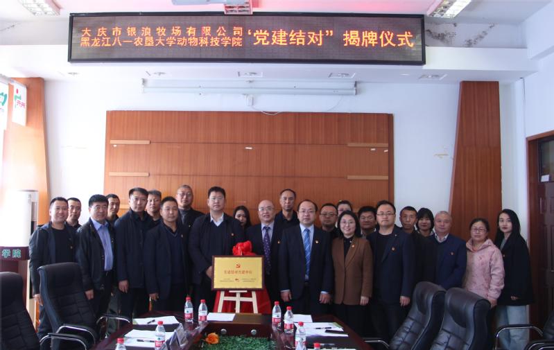会议最后,由银浪牧场有限公司党委书记董事长孔令辉同志和公司党委书记张爱忠同志共同为“党建共建结对单位”揭牌。