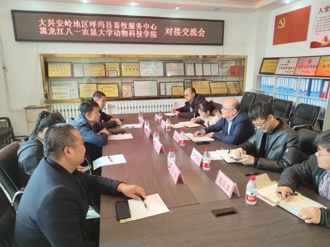 4月14日,大兴安岭地区呼玛县畜牧服务中心主任韩创业一行到公司进行对接交流,公司党委书记张爱忠、副经理尹国安、副经理贺显晶及教师代表周玉龙、李凌岩参加座谈会。