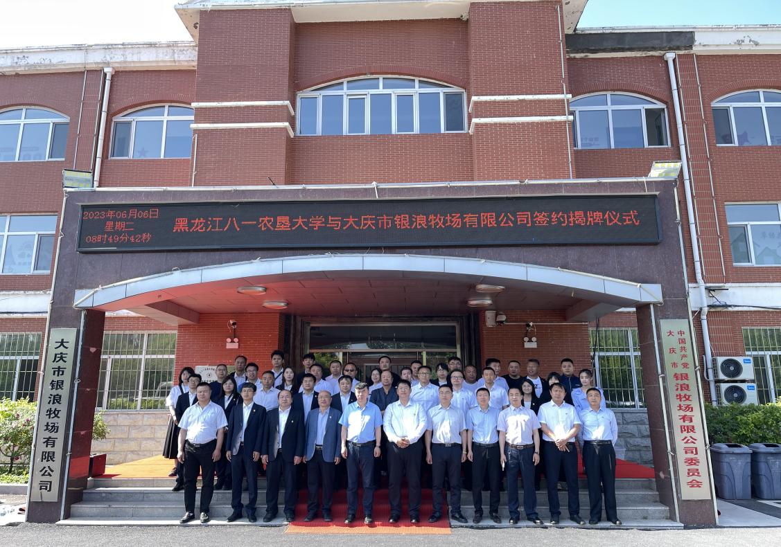 为深入推进“学习贯彻习近平新时代中国特色社会主义思想主题教育”、贯彻落实党的二十大精神,扎实推进工作作风建设见实效,着力推动和拓展校企合作,2023年6月6日上午,公司党委领导班子、各党支部书记及教师代表一行来到大庆市银浪牧场有限公司,与银浪牧场党委班子成员、支部书记、各连队队长、实习基地企业负责人共同参加“校企合作共建”签约活动,大庆市让胡路区王洪喜副区长参加签约揭牌仪式。