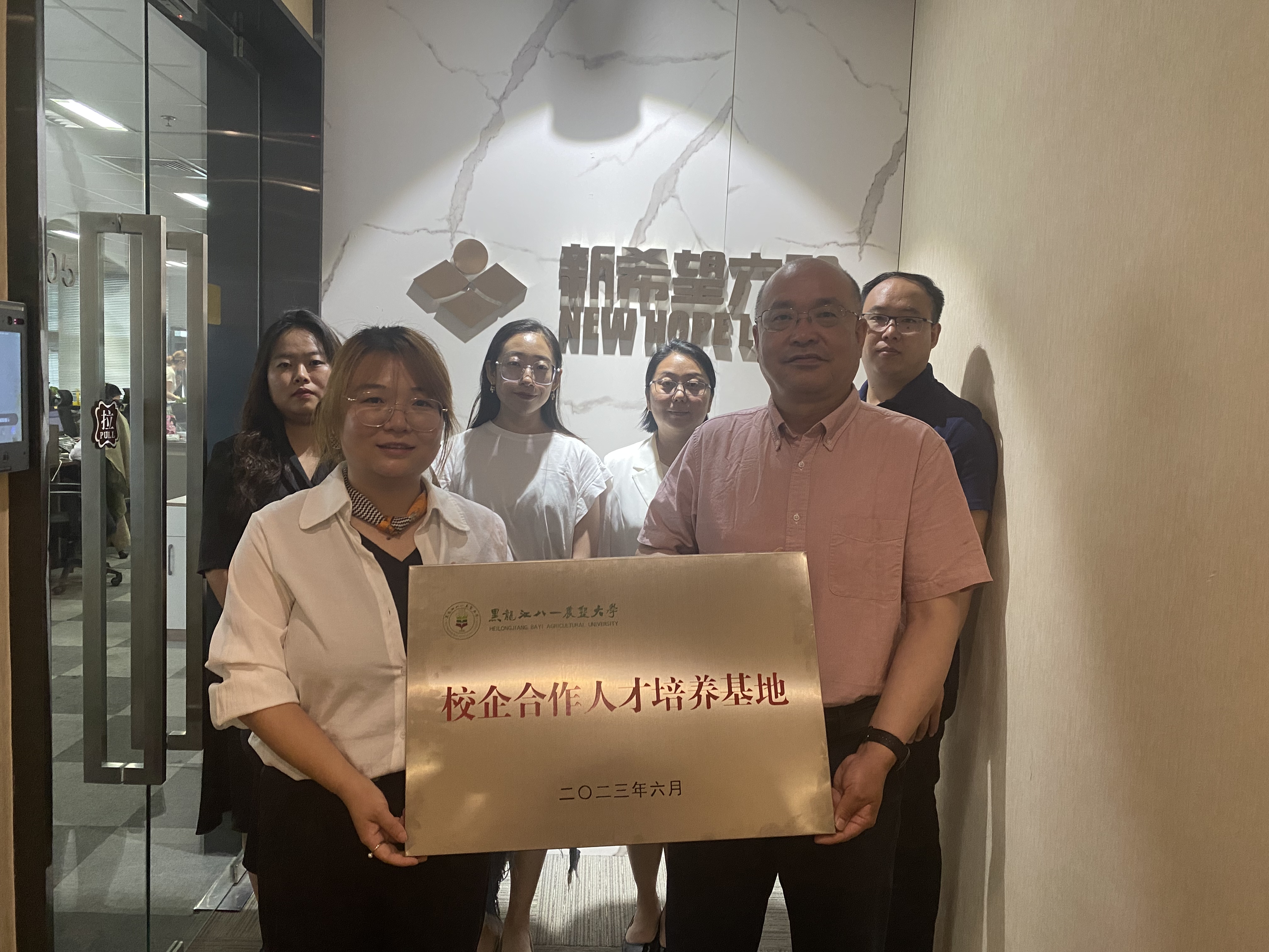 在新希望六和股份有限公司,双方共同回顾了10余年来双方合作的良好基础,列举了在新希望六和集团工作的八一农大优秀学子。新希望六和猪产业事业群东北纵队人力资源总监张静介绍了集团目前发展状况和未来规划,详细介绍了企业招聘需求,阐述了当前形势下,双方未来合作的主要领域。张爱忠介绍了英国上市公司365基本情况,为“校企合作人才培养基地”授牌,表达了双方继续深入合作的信心。