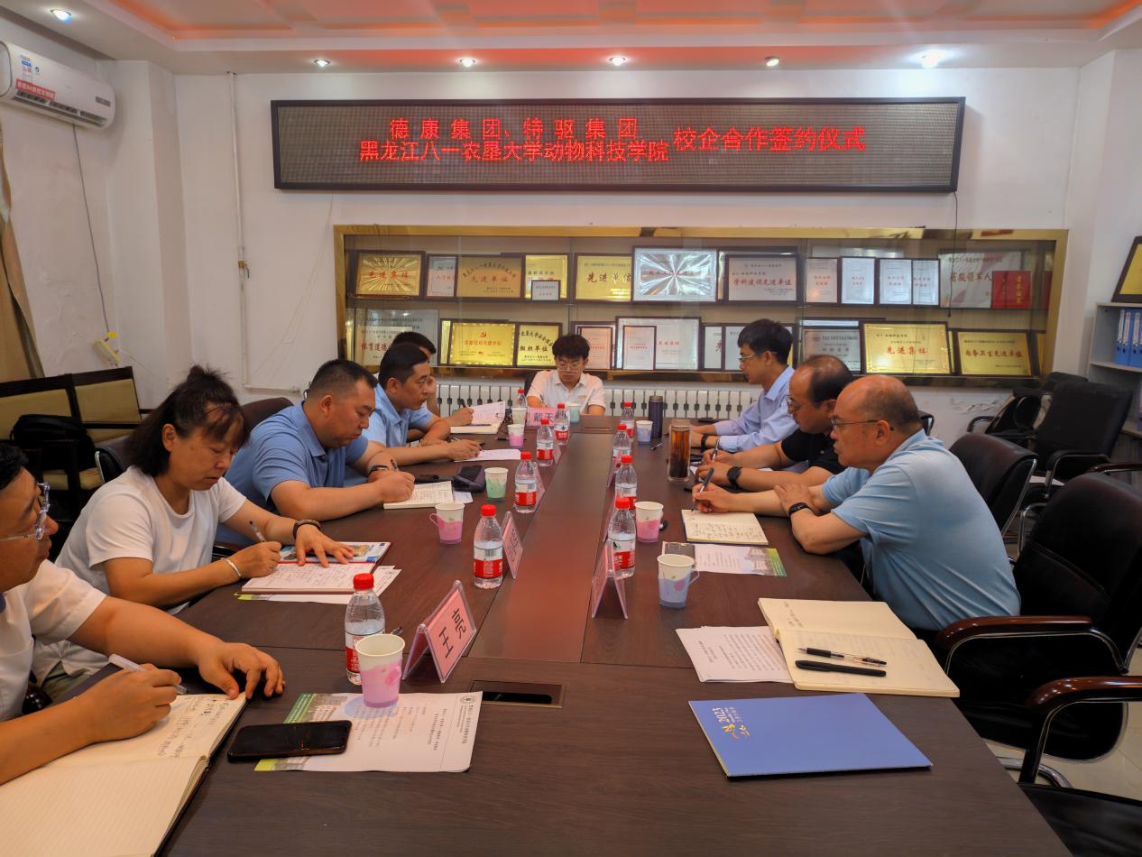 座谈中,校企双方就建立实践基地和科研基地、开设企业冠名班、选聘企业导师、联合培养研究生达成一致,在生物发酵、精液高效保存、精准饲喂、动物福利等方向形成成果转化和合作研发意向。双方商定成立联络组,建立科学、高效、开放的合作机制,全方位多领域开展深层次合作,实现资源共享、优势互补、互惠共赢,为促进现代畜牧业发展贡献力量。德康集团北方区域综合部经理赵春晖、松原公司总经理王亮、德康产业研究院主任王力和研发专员戴天舒参加座谈。