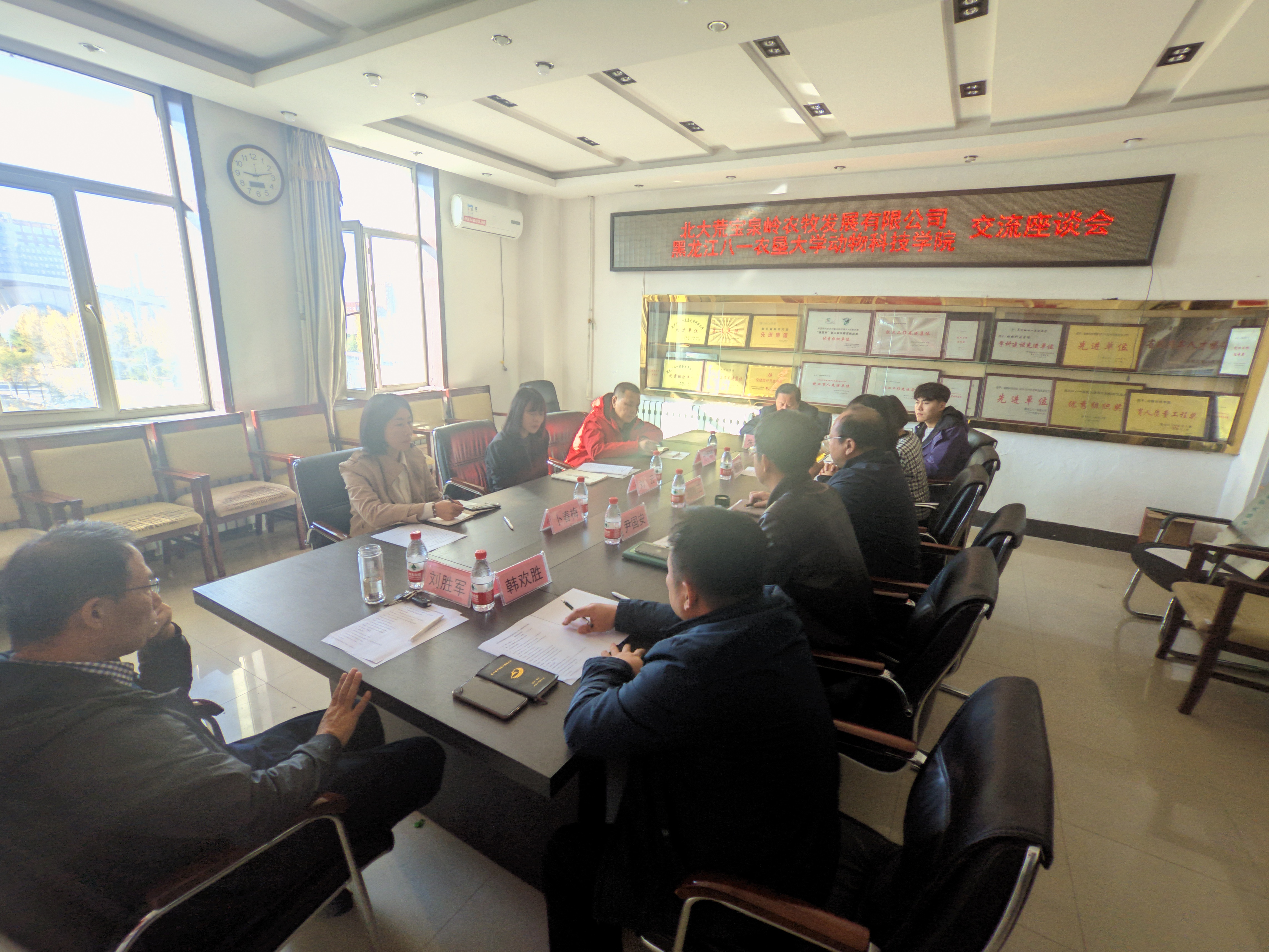 10月16日,北大荒宝泉岭农牧发展有限公司人力资源总监刘云、黑龙江北三峡养殖有限公司总经理沈志勇、黑龙江北三峡食品有限公司综合管理部经理卜春梅一行来公司对接交流校企合作。学院经理郑家三、副经理尹国安、贺显晶、动物科学系系主任韩欢胜,教师代表朱战波、刘胜军、王秋菊参会,会议由学院副经理贺显晶主持。