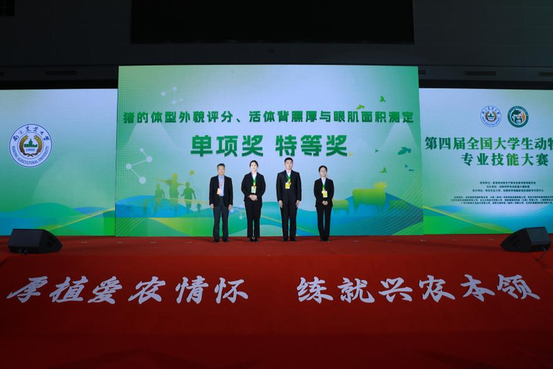 本次大赛包括生态畜牧场规划设计,饲料原料快速鉴定与掺假识别—掺假鱼粉的鉴定,鸡的精液采集、品质检测及人工授精,猪的外形评分、活体背膘厚与眼肌面积测定四个竞赛项目。比赛中,公司代表队以扎实的专业基础、熟练的操作技能和良好的团队协作精神获得团体二等奖,同时猪的外形评分、活体背膘厚与眼肌面积测定项目获得单项特等奖,充分展示了公司动物科学专业学子的专业素养和精神风貌。
