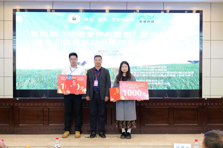 北京菲迪集团总经理陶春卫出席颁奖典礼并致辞,他鼓励研究生走进企业、了解行业,学习更多新理论、新知识、新技术、新方法,投身畜牧行业,立志成为畜牧事业栋梁之才。