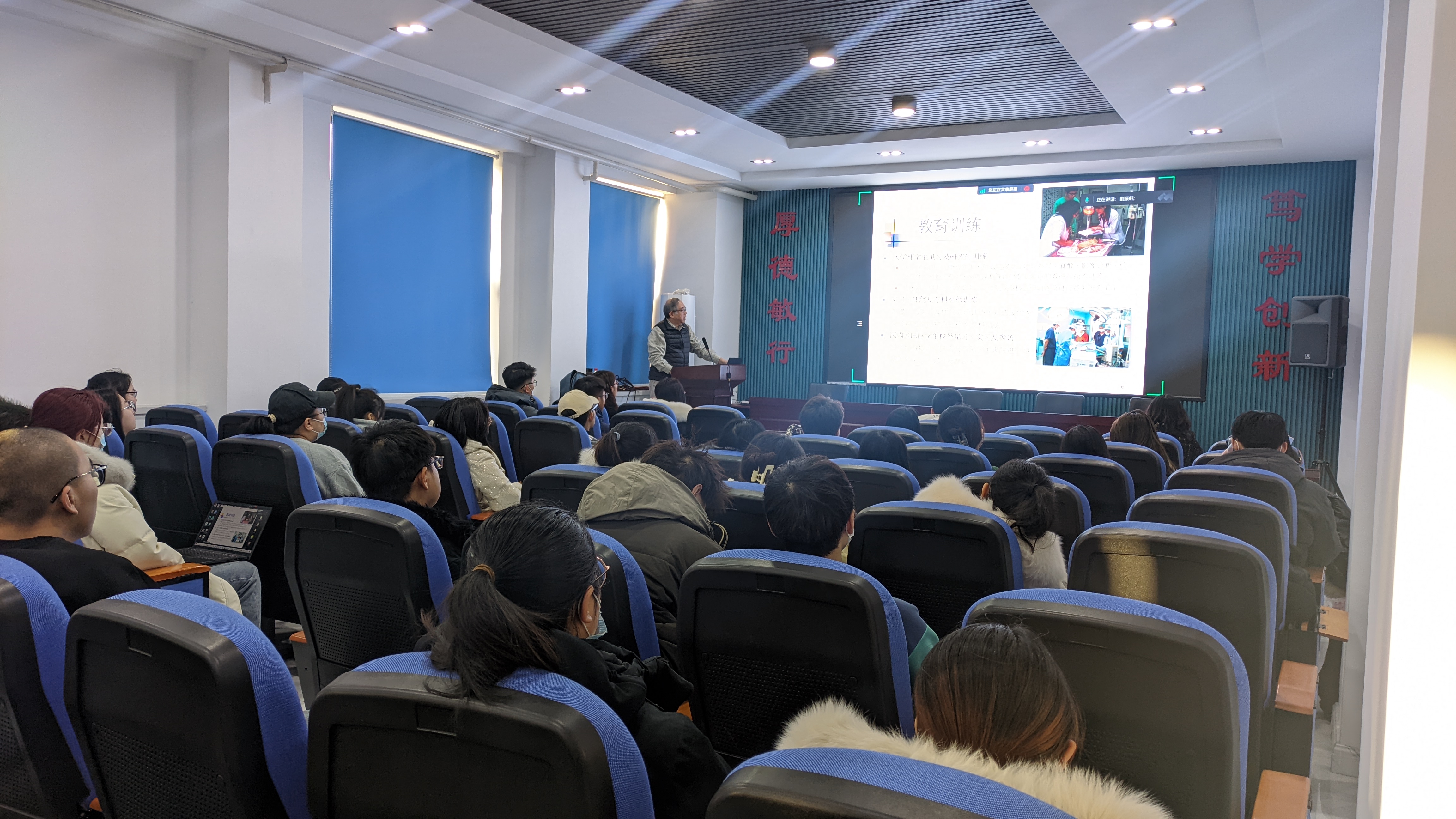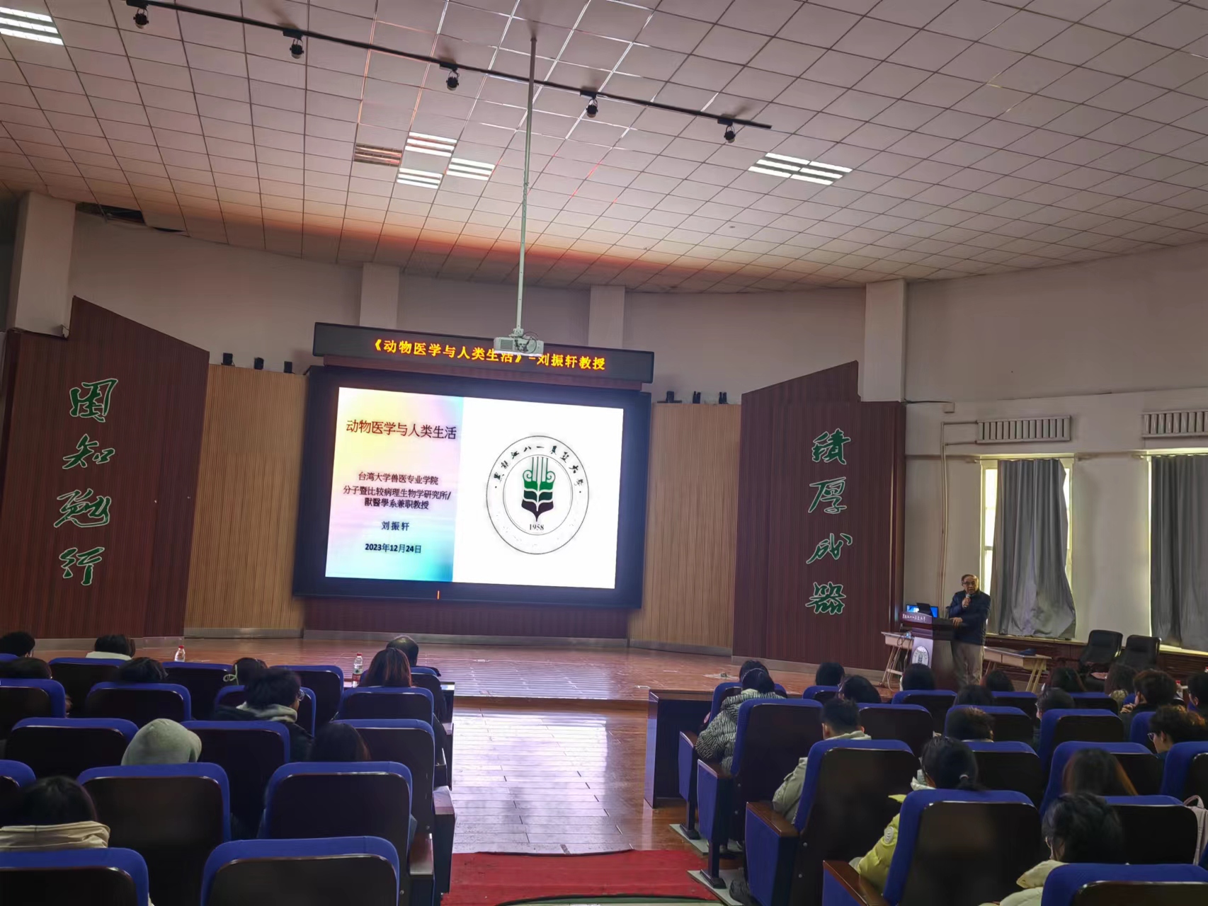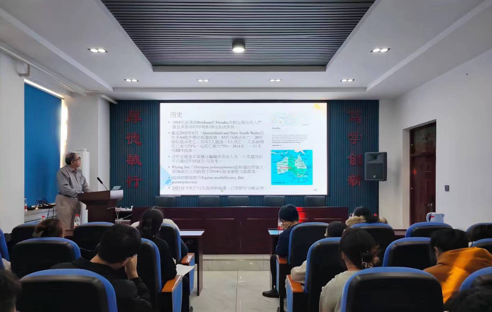 12月22日,刘振轩教授以“新兴与再现人畜共患传染病及人类与动物冠状病毒感染”为主题为研究生做学术讲座,他从近年来出现的新兴及再现人畜共患传染病,人与动物冠状病毒性疾病的传染途径、诊断与治疗等方面做了精彩分享,报告深入浅出、前沿性强,与会师生结合自身研究中遇到的困惑与其进行深入的交流互动。此次学术讲座提升了员工对兽医专业科学研究重要性的认知,激发了员工矢志创新的科研热情。