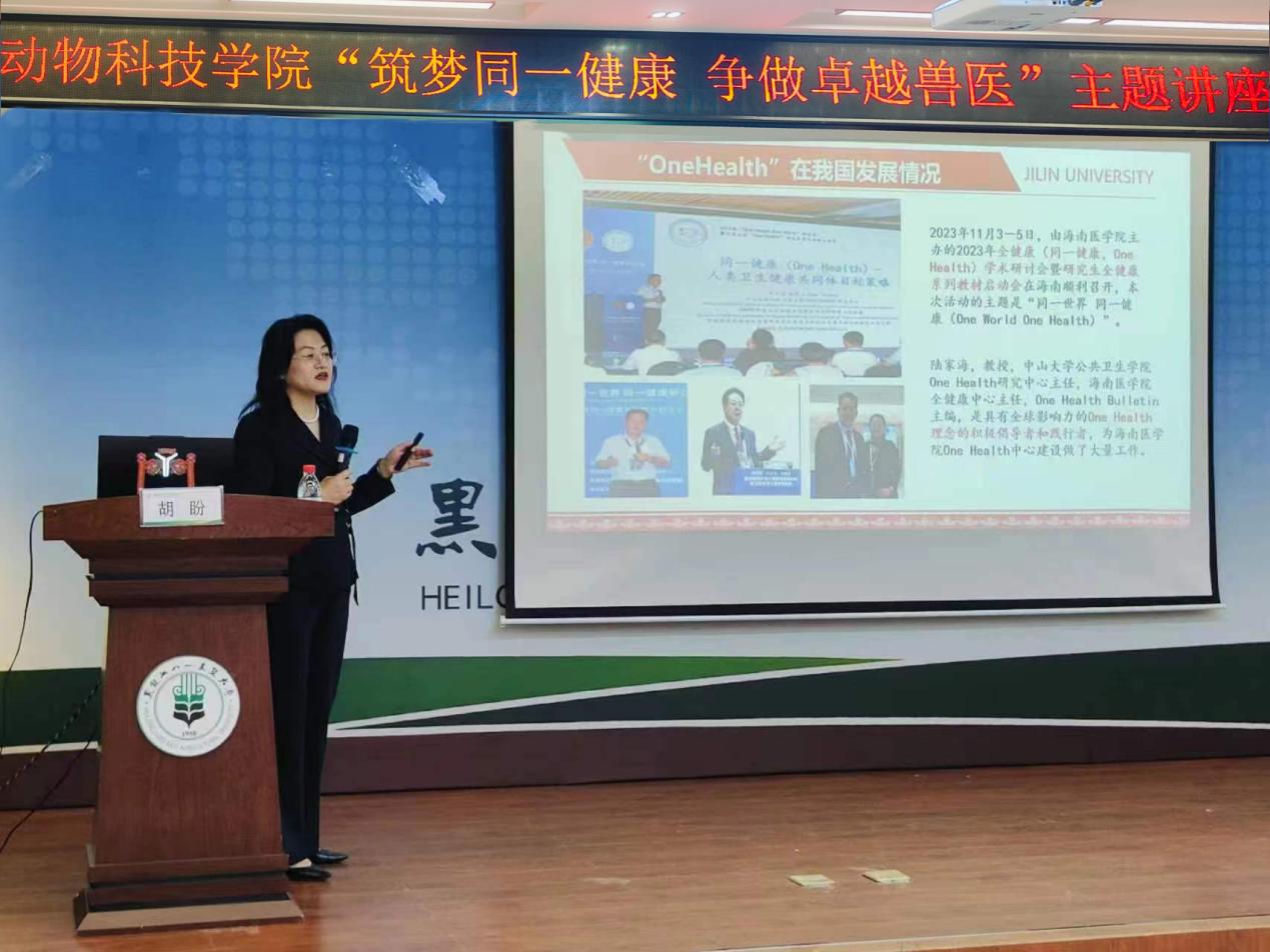 本次活动邀请了吉林大学动物医学学院兽医公共卫生学系主任胡盼教授,作题为“筑梦同一健康 争做卓越兽医”的主题讲座,活动共计70余名员工参加。胡盼以个人学习工作经历、如何成为卓越兽医人才展开介绍,从全球视野、专业素质、能力提升以及毕业去向四个方面进行分享,不仅让同学们对兽医行业有了更深入的了解,也激发了他们对未来职业发展的热情,阐释了兽医行业的就业前景和发展趋势,鼓励同学们积极投身兽医事业,为动物健康和人类福祉贡献自己的力量。