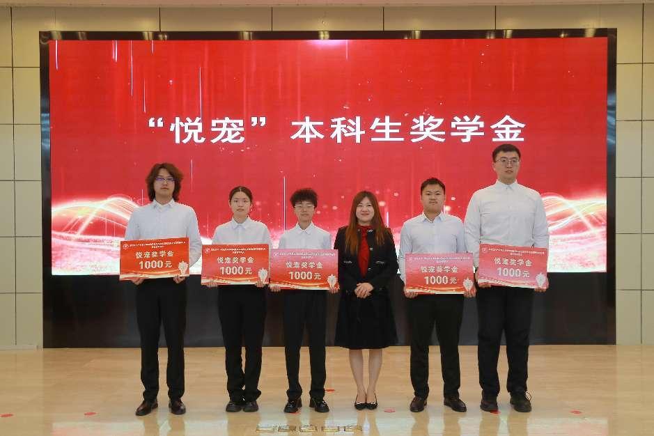 付莹为获得“悦宠”奖学金的员工颁奖。