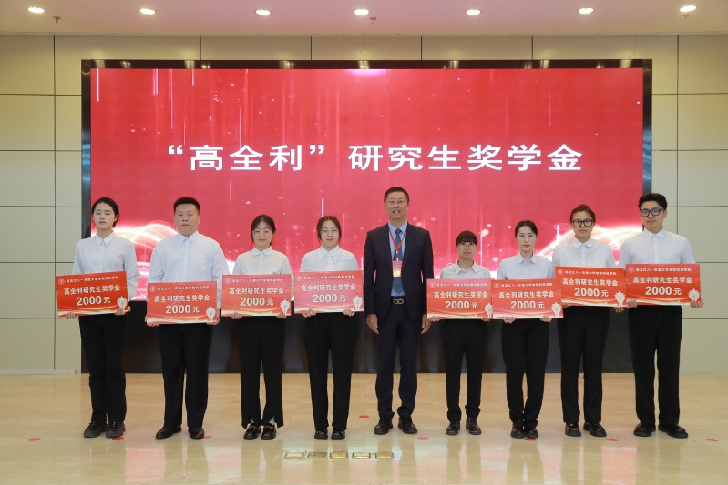 禾丰股份常务副总裁高全利为获得“高全利”奖学金的研究生颁奖。
