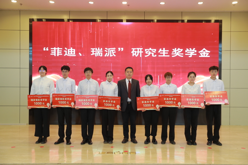 集团科技处副处长左锋为获得“菲迪、瑞派”奖学金的研究生颁奖。