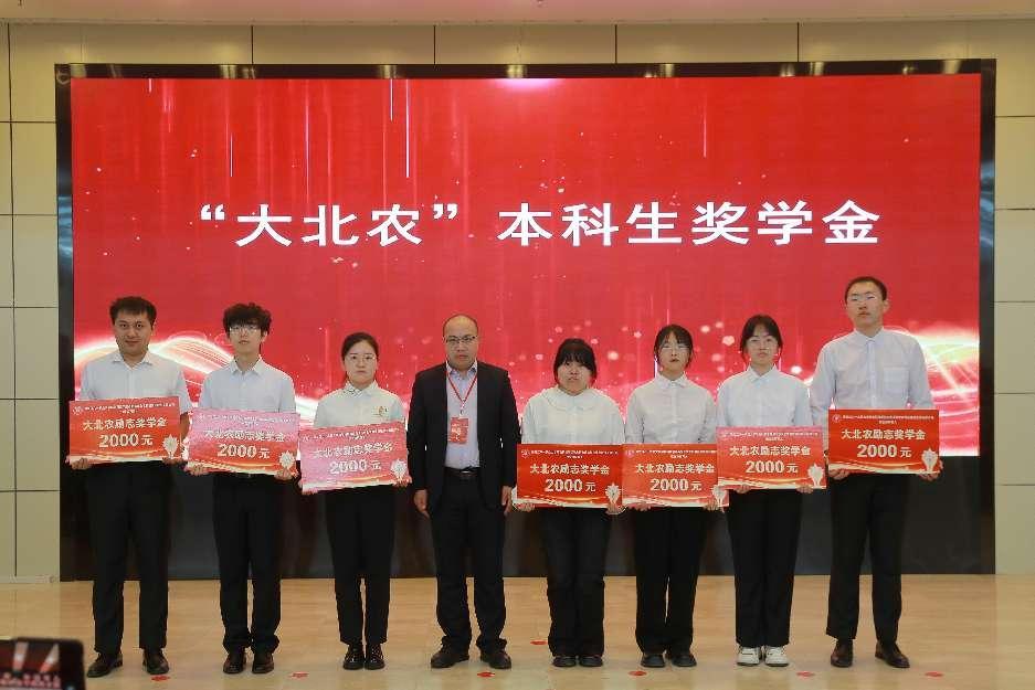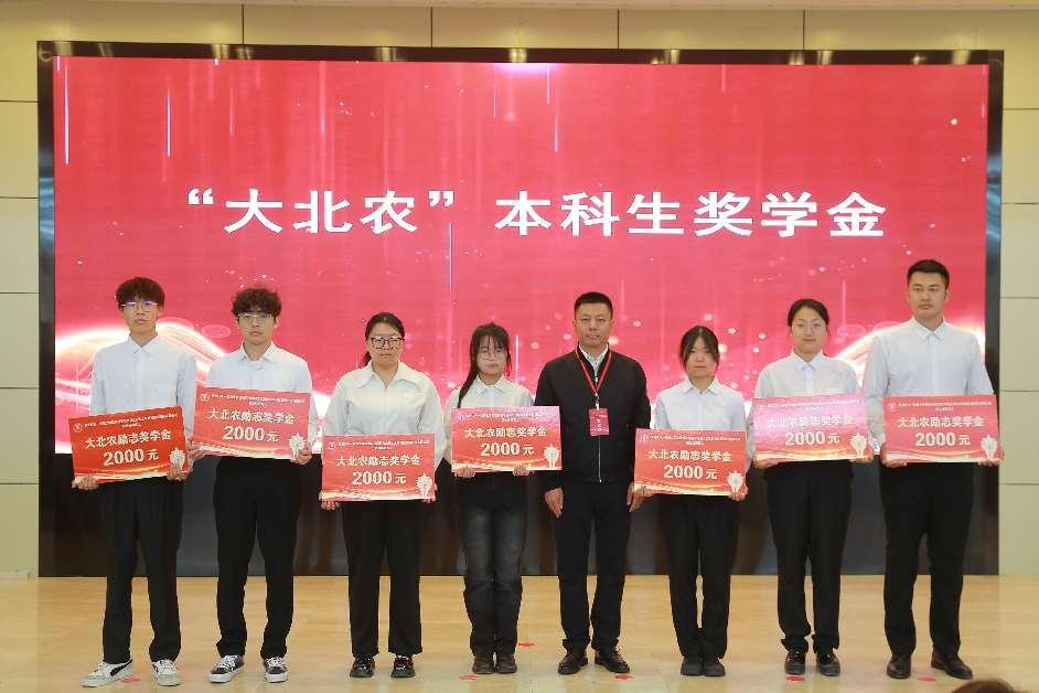 大北农猪饲料集团黑龙江区总裁李晓成为获得“大北农”奖学金的员工颁奖。