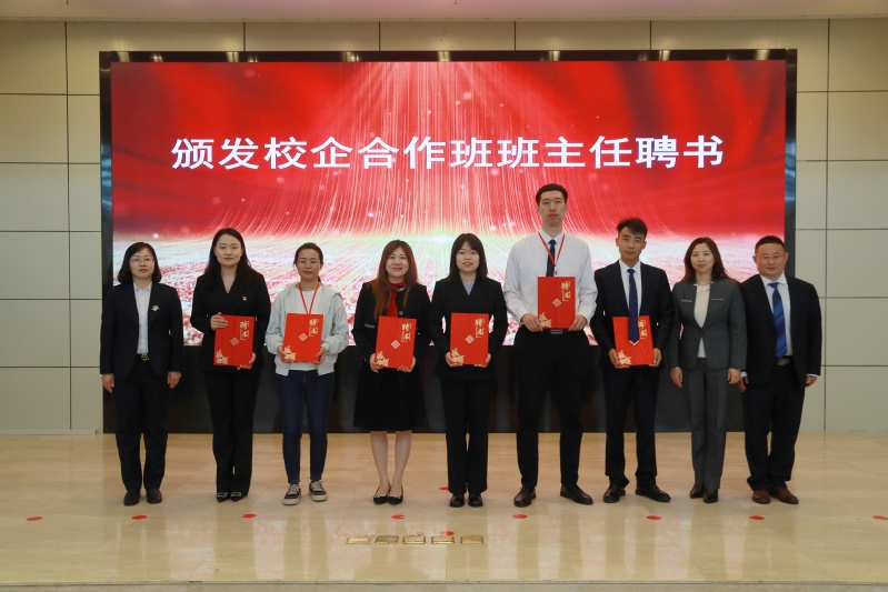 公司副院长贺显晶、副经理王建发、正处级辅导员佟丹丹为校企合作班“生泰尔班、大北农班、瑞派班、悦宠班、牧原班、大田班”班主任颁发聘书。