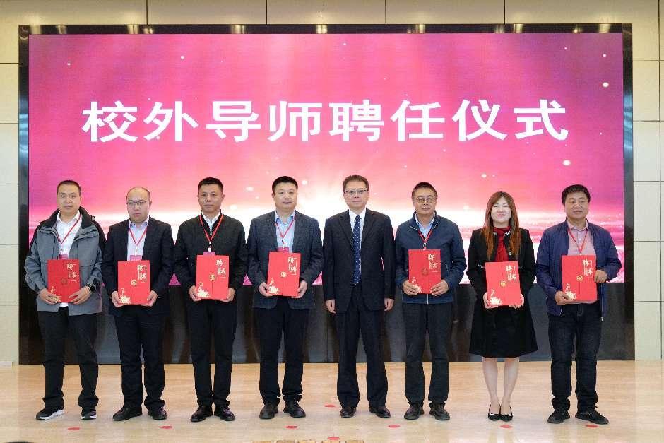 崔卫国为刘兰、付莹、李晓成、刘春海、高安祥、丁志勇、沈志勇颁发校外导师聘书。