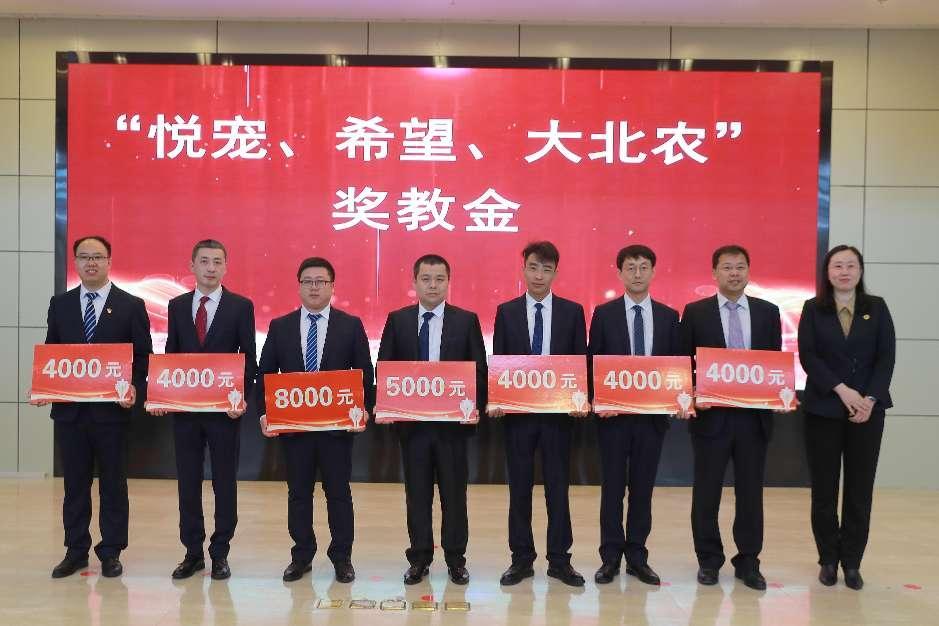 集团教务处处长王畅为获得“悦宠、希望和大北农”奖教金的教师:曲永利、杨威、王峥、白云龙、葛延松、刘鹏、曲艳鹏颁奖。