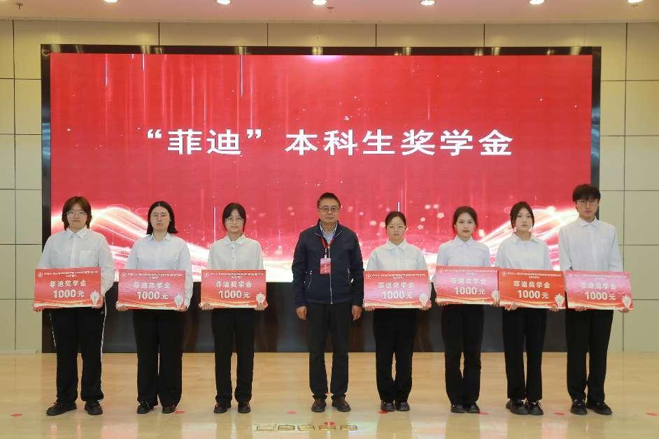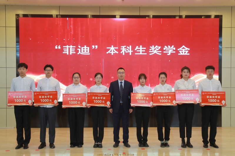菲迪集团董事长刘春海为获得“菲迪”奖学金的员工颁奖。