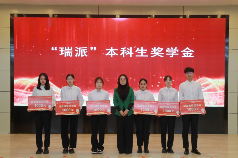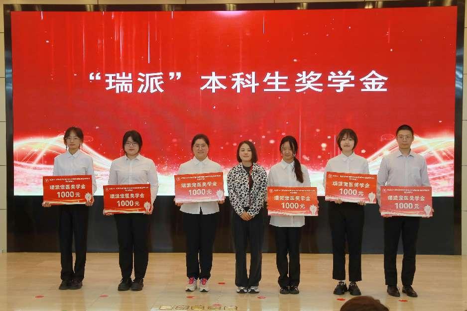 辽宁瑞派东贝宠物医院管理有限公司大区经理李秀丽经理为获得“瑞派”奖学金的员工颁奖。