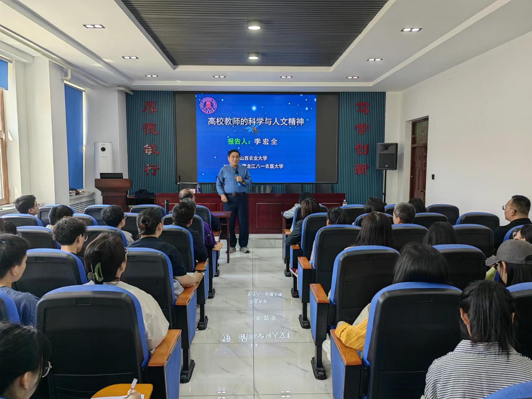 李宏全教授以《高校教师的科学与人文精神》为题,结合自身多年的教学科研经历,通过高校教师的基本要求和职责、科学精神、大学教师的科研和人文精神等方面深入剖析高校教师的职责、科学精神和人文精神,倡议当代大学教师要以实事求是的科学家精神做严谨诚信的科学研究,同时要注重科学精神和人文精神相结合,做有信仰、有情怀、有人文精神的新时代高校教师。