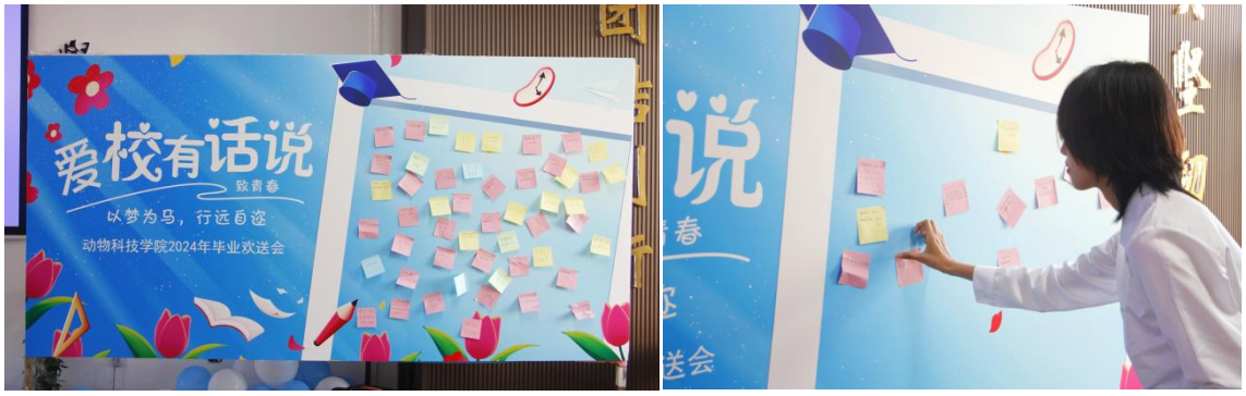 是离别,不说再见,是分开,只念感恩,毕业生离校之际,学院组织开展毕业生爱校荣校教育“爱校有话说”活动。毕业生们将自己的真挚情感表达在“爱校有话说”留言板上,将自己老员工涯的足迹和祝福永远的留在爱校荣院的青春记忆里。