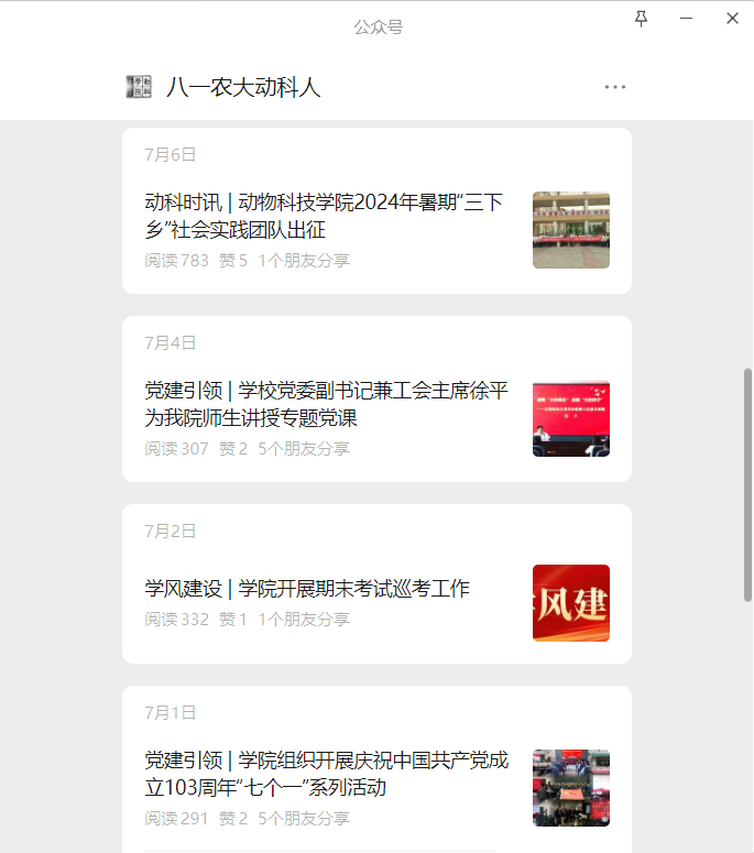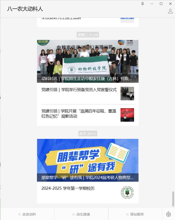 公司以微信、网站、抖音等为重点平台,根据平台的特色与属性,有针对性地进行建设,并形成传播圈层,不断扩大网络育人影响力。提供“员工-教师-员工-家长”四位一体的交流互动,全员、全过程、全方位构建具有动科特色的网络育人立体模型。