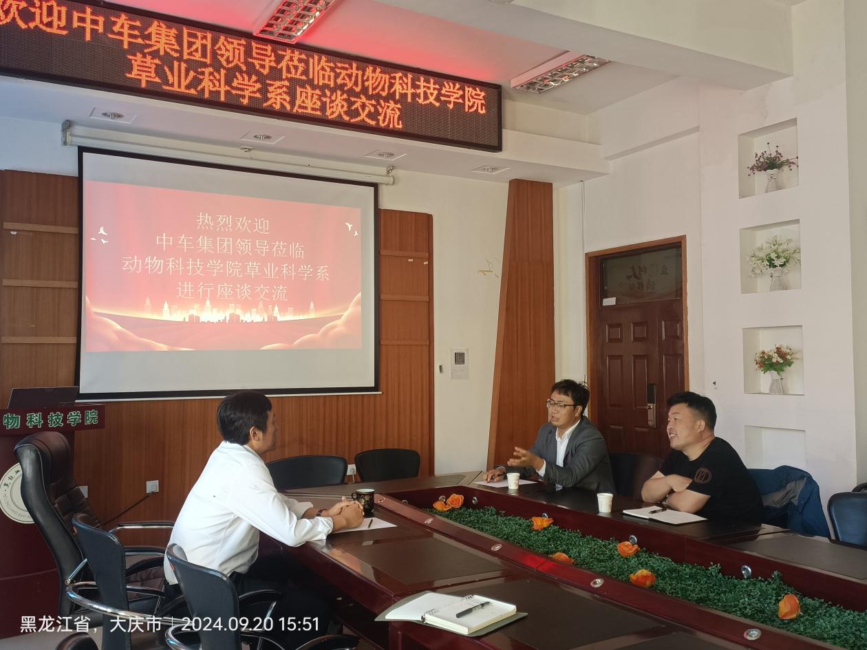 王小军对种子丸粒化意义、丸粒化种子产业化商业化等方面问题进行详细介绍,分享了有关种子丸粒化在谷子方面的应用成果,并期待借助学校的科研力量,共同推动技术创新与产业升级。曲善民介绍了牧草对松嫩盐碱草地治理的相关技术、不同耐盐碱牧草种子的特点和习性等,并对东北松嫩平原盐碱地治理与重度盐碱草原生态修复进行介绍与分析。参会人员共赴大同区和平牧场,对盐碱地谷子种子丸粒化种植进行现场推广与示范,并前往和平牧场苜蓿基地,调查大同区和平牧场刈割后苜蓿秋季长势情况,现场指导改良盐碱草原技术和刈割护苗注意事项,为苜蓿增产和安全越冬提供技术保障。