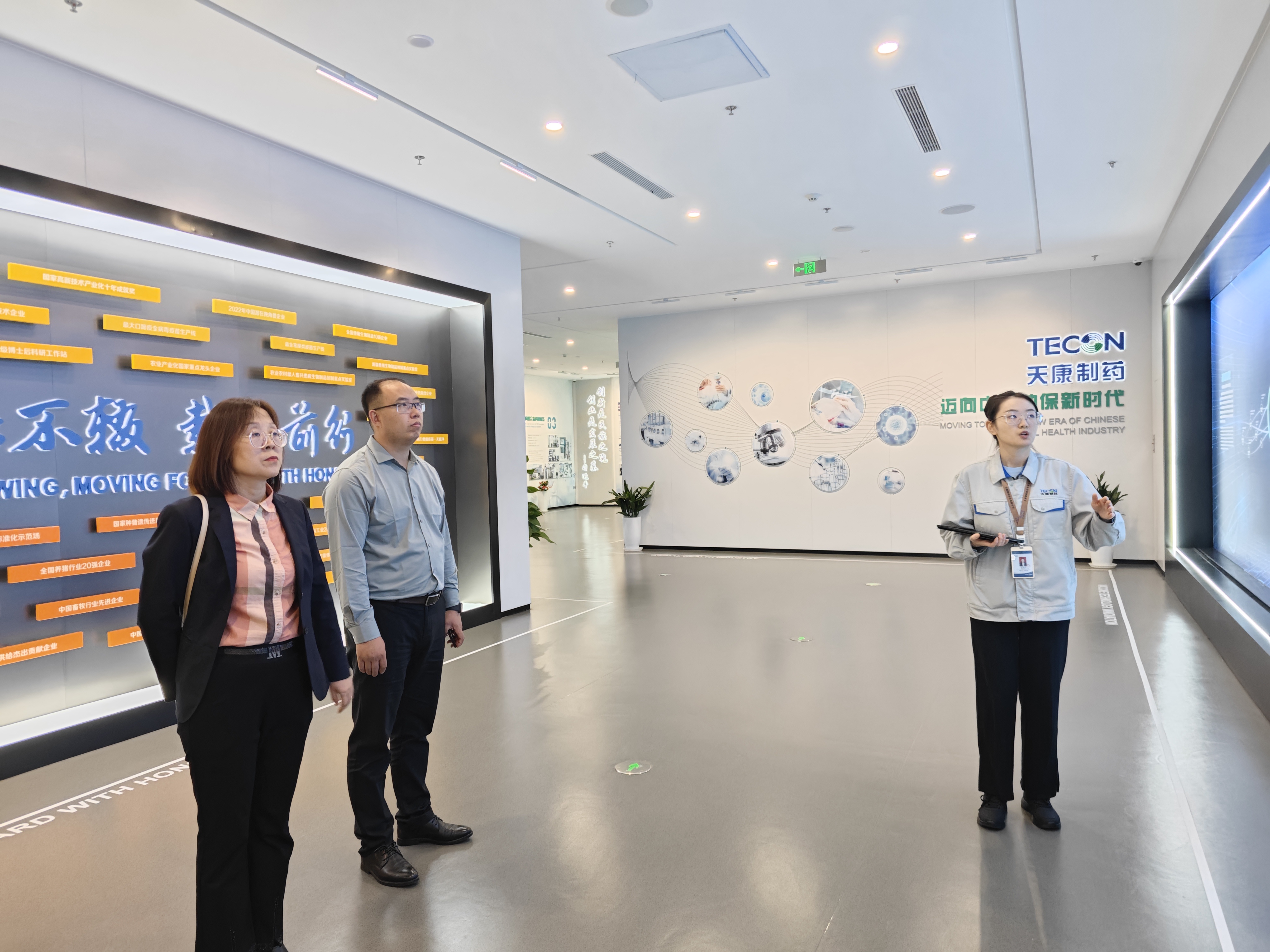 在企业领导的陪同下,动物科技公司一行参观了部分企业展馆、生产车间、研发实验室、办公场地等。