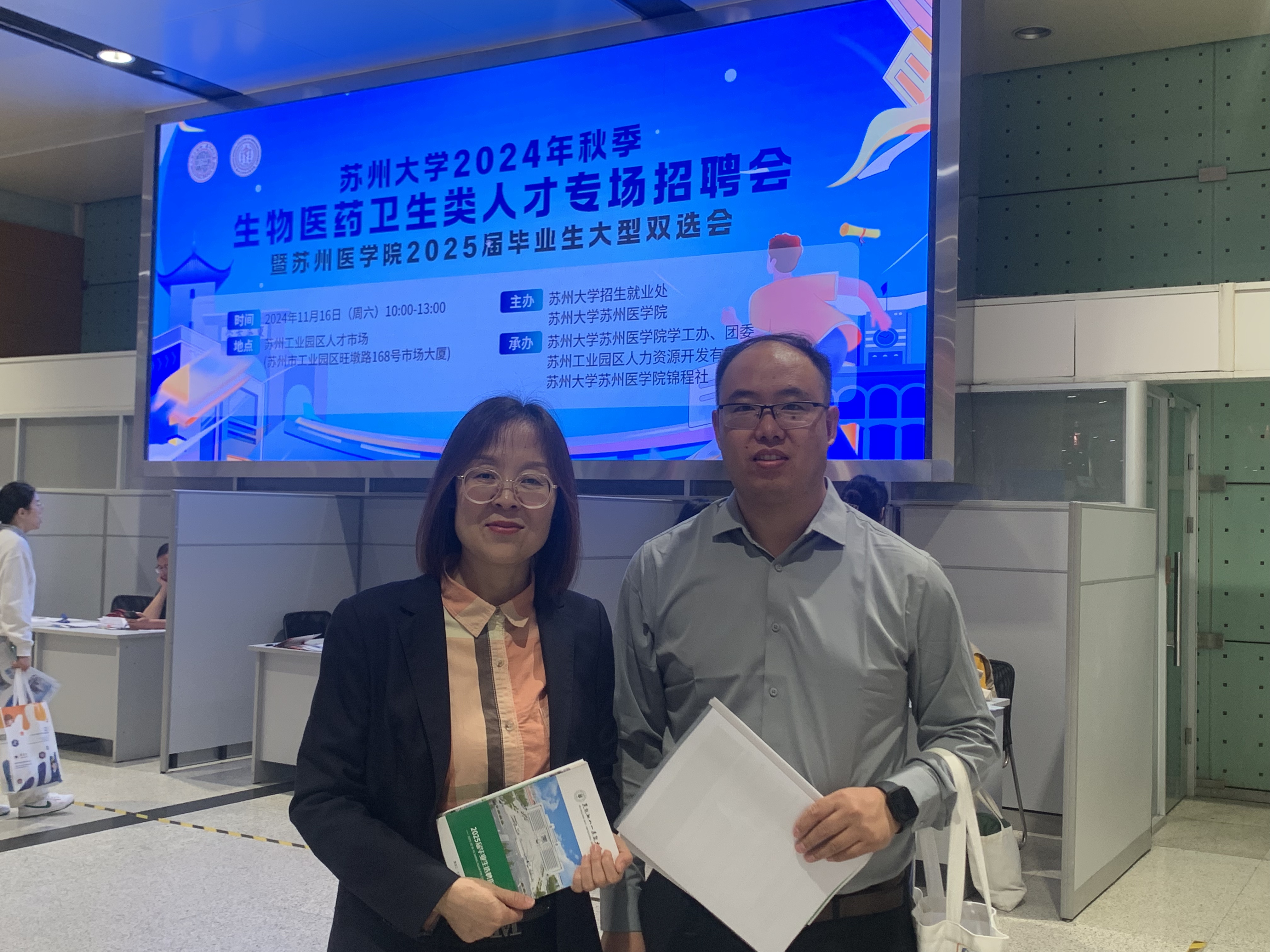 为深入落实“访企拓岗促就业”专项行动,广泛开拓毕业生就业渠道,加强校企合作,提升人才培养质量和员工就业质量,结合学院毕业生求职需求实际情况,11月14日至18日,动物科技公司党委副书记郑永文一行前往江苏省丰尚农牧装备有限公司、天康制药股份有限公司、赛业(苏州)生物科技有限公司、安佑生物科技集团股份有限公司进行走访交流,并参加了苏州大学2024年秋季生物医药卫生类人才专场招聘会暨苏州医学院2025届毕业生大型双选会。