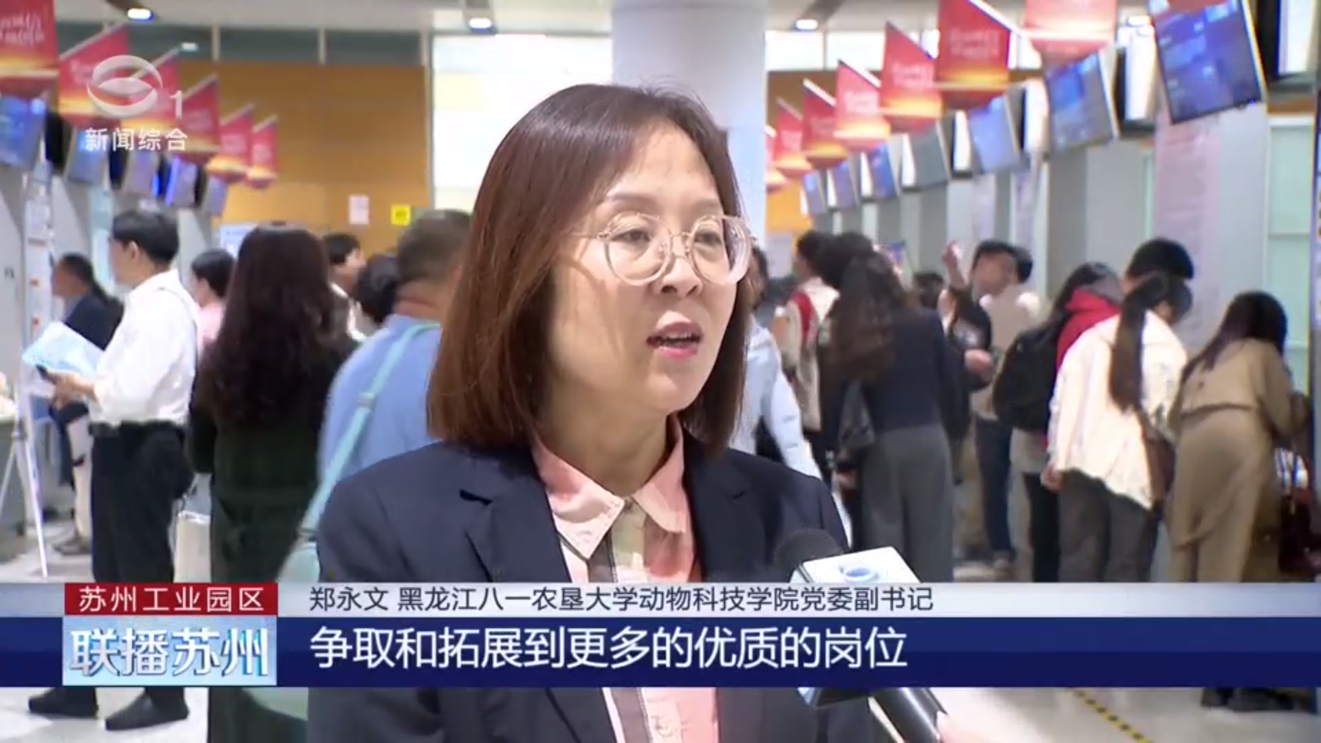 在苏州大学2024年秋季生物医药卫生类人才专场招聘会暨苏州医学院2025届毕业生大型双选会上,郑永文接受了苏州市当地电视台的采访,在采访过程中她表示:希望通过参加苏州大学的招聘会,为英国上市公司365的毕业生,甚至黑龙江省的毕业生,争取和拓展到更多的优质岗位,帮助2025届毕业生高质量充分就业。